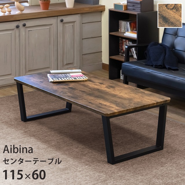 Aibina センターテーブル W115 ローテーブル ちゃぶ台 ブラックスチール脚