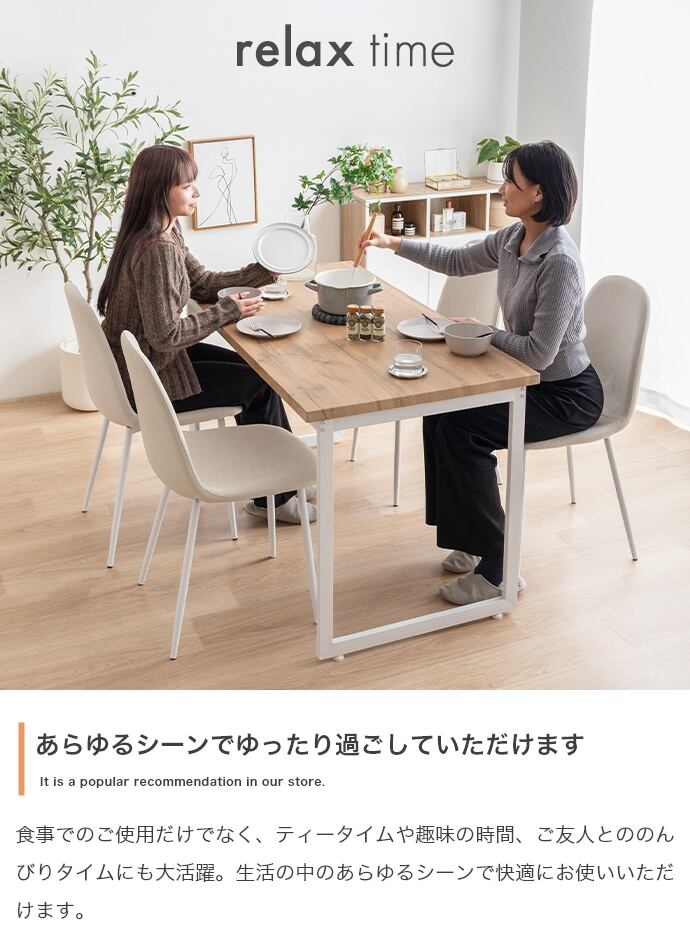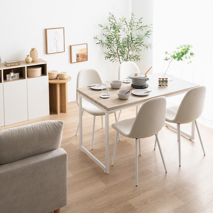 温かみのある居心地のいい空間で食卓が囲める『Moku(モク)』ダイニングテーブル。まるでカフェにいるかのような落ち着いた空間作りが叶います。またコンパクトながらも広めの天板で、普段使いはもちろん、来客時には料理や飲み物を並べても余裕がある広さに設計。日常もおもてなしも快適にこなせる1台に仕上げました。