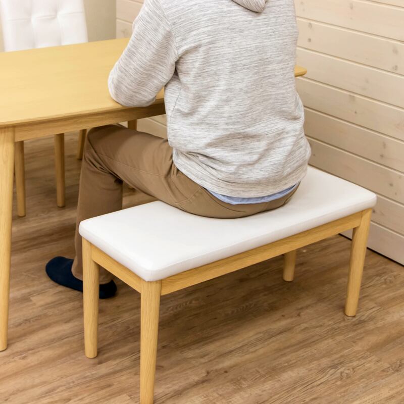 Sirius ホワイト PVCレザー W86 ダイニングベンチ 天然木 ナチュラル色脚