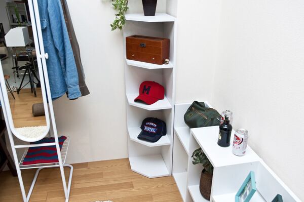 コーナーのデッドスペースを有効に使えます。真四角ではなく、上から見ると五角形になってます。