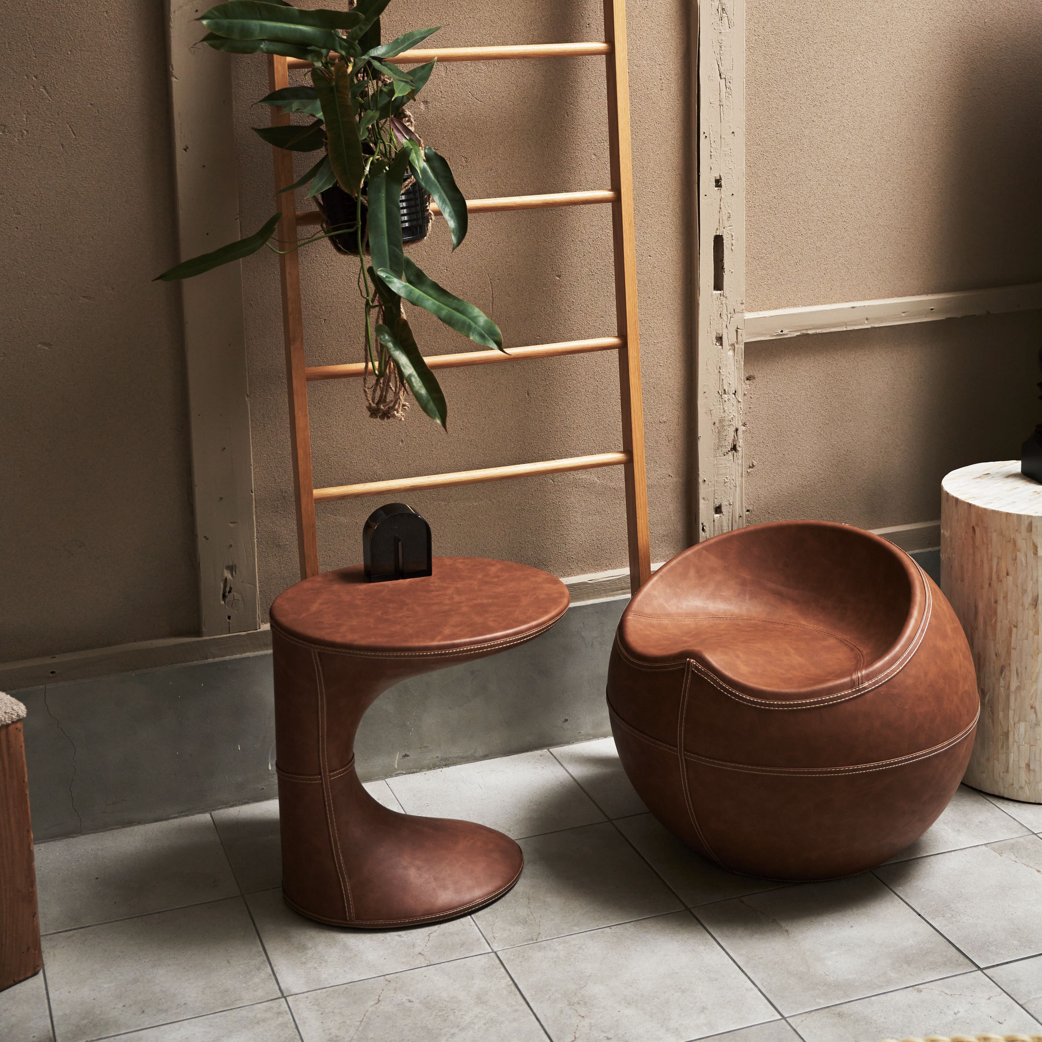 ソフトレザーのクールな質感と施されたステッチが絶妙な調和を魅せ、独創的なフォルムが空間を彩り置くだけで主役になります。