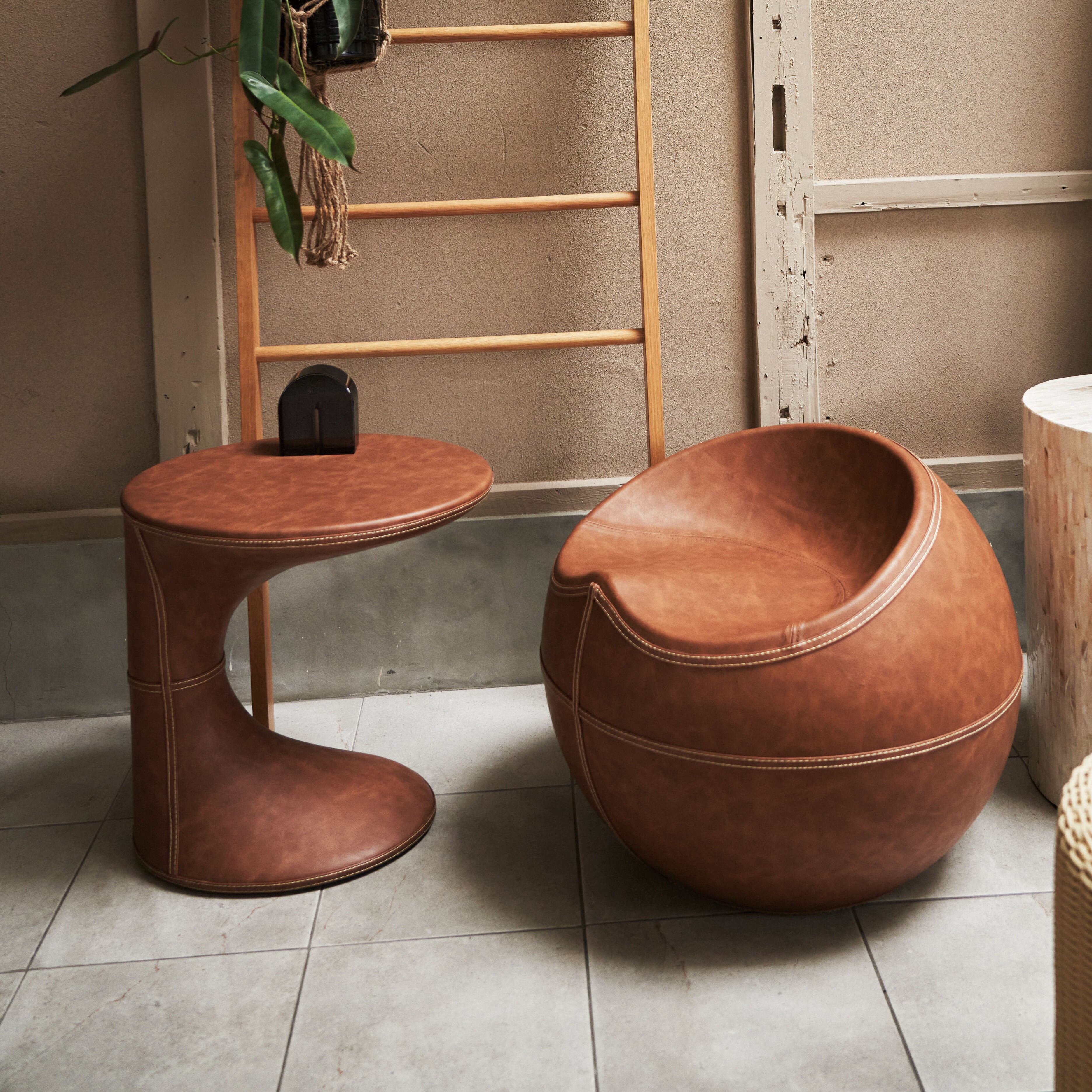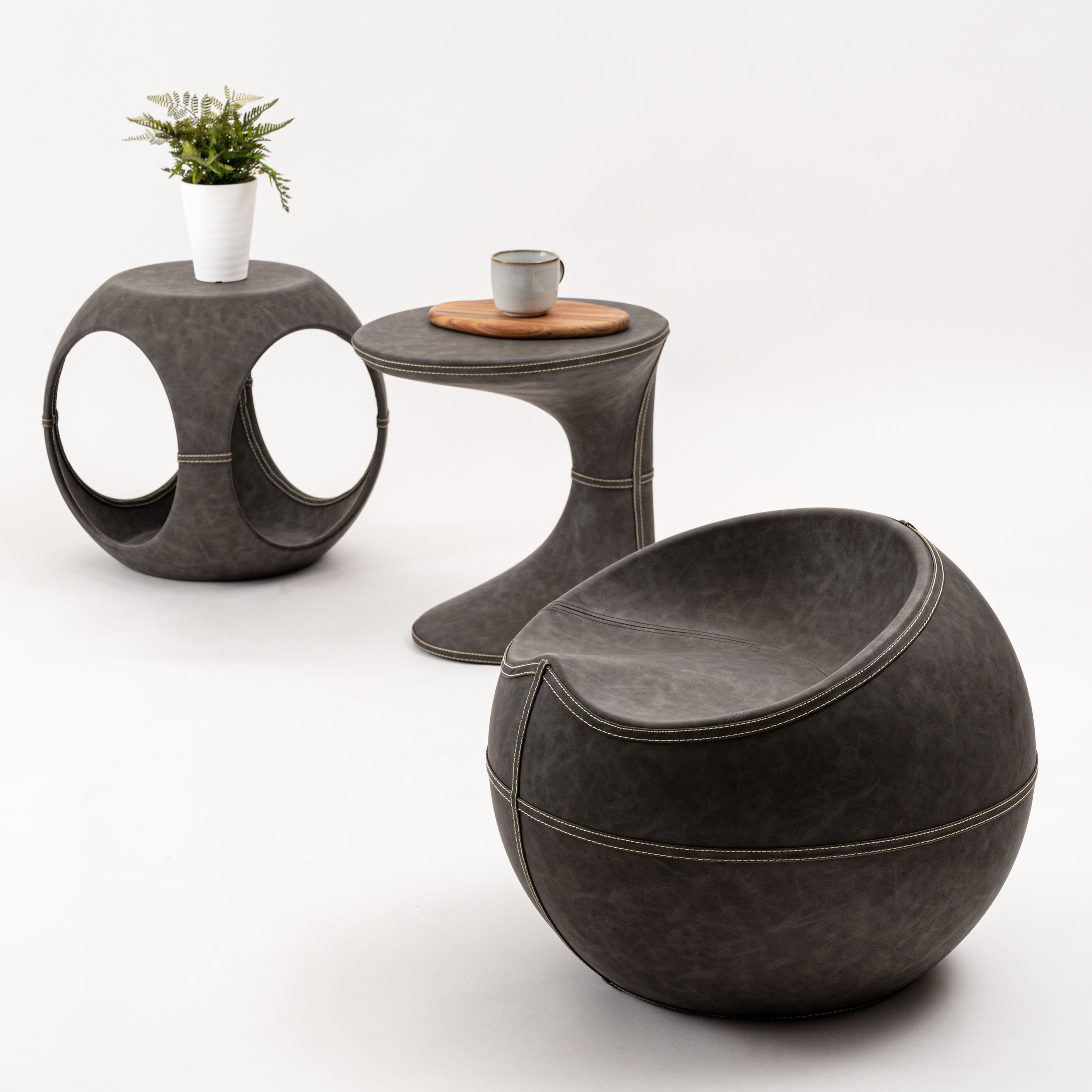 ソフトレザーのクールな質感と施されたステッチが絶妙な調和を魅せ、独創的なフォルムが空間を彩り置くだけで主役になります。