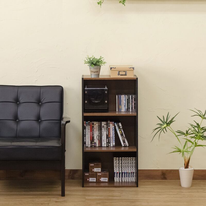オープン収納3箇所です。木目柄と無地のツートンカラーになります。