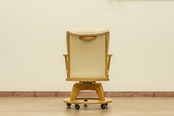 MEGAN キャスター付きダイニングチェア PVCレザー 肘付 天然木フレーム