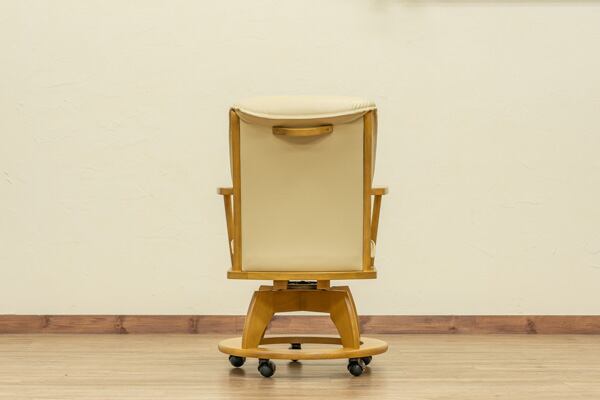 座面は360度回転します。張り材はお手入れし易いPVCです。