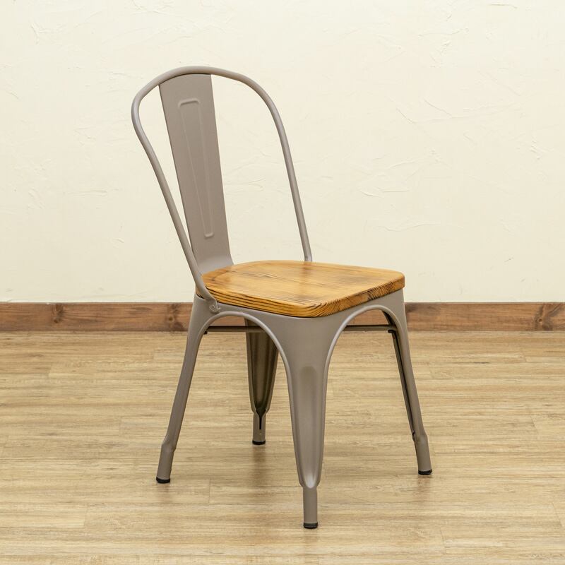 スタッキング(重ね置き)も4脚まで可能です。座面は天然木素材を使用しています。木目は一つ一つ異なります。木目の色味を濃く、目を惹くように表面は焼き付け加工仕上げとなっています。