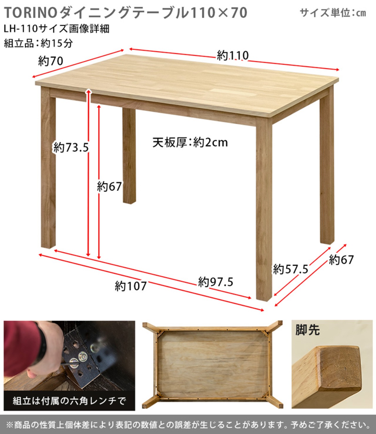 サイズ:幅1100×奥行700×高さ735mm 天板厚:約20mm