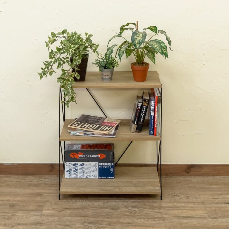 Grant モダン 3段ラック サイドラック オープンシェルフ 木製天板 スチールフレーム