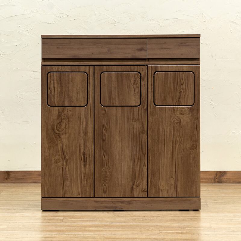 フラップ式ダストボックス 3分別 引出し付 ゴミ箱 キャビネット