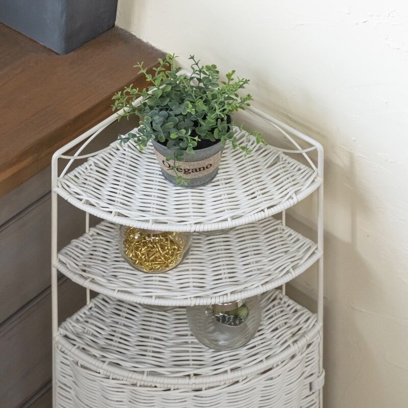 ラタン調 コーナーラック 3段 チェスト 人工ラタン 通気性 防水
