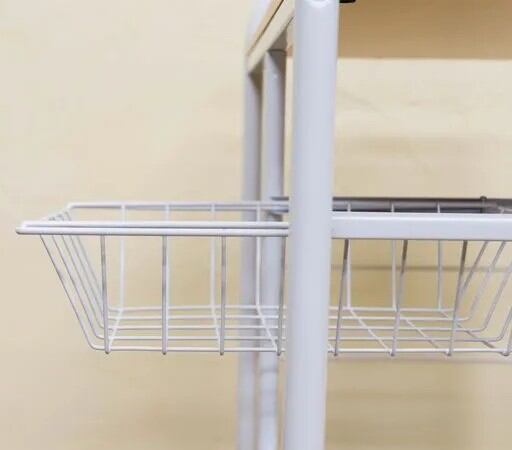 カゴ・棚付きキッチンワゴン キャスター付 スライド引出し2段