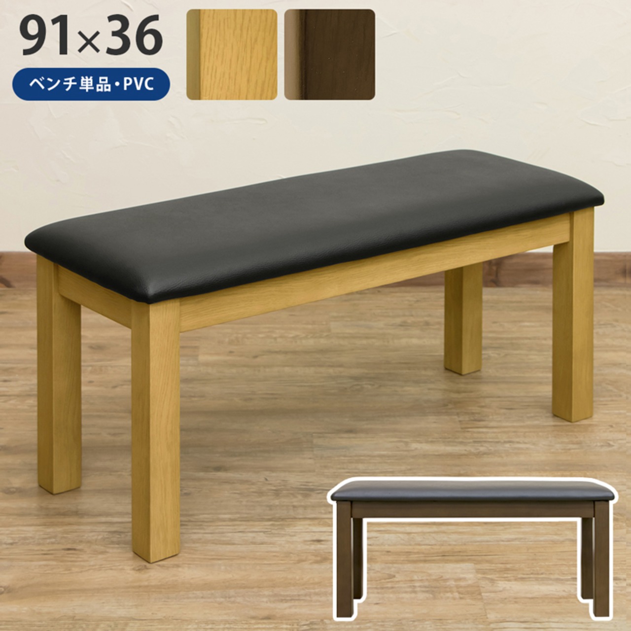 ダイニングベンチ W91 天然木フレーム 昭和レトロ 長椅子