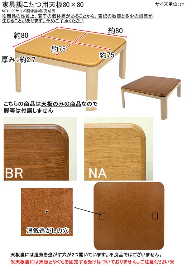 家具調こたつ用天板 80×80 正方形 テーブル天板