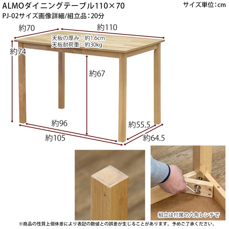 ALMO ダイニングテーブル 110×70 天然木フレーム