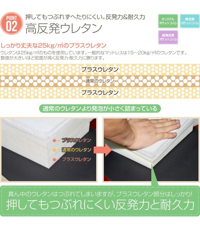 快眠ベッド マットレス。ポケットコイルマットレスは1つ1つのコイルが“点で体を支える”ので、しなやかな寝心地を体感できます。身体のラインにフィットし、マットレスにかかる“耐圧を分散”しますので“横揺れが少ない”のが特徴のベッド マットレスです。また、「8万回」の過酷な耐久テストをクリアした、安心の品質は、あらゆる世代の方へ快適な睡眠を実現いたしました。【シングルサイズ】