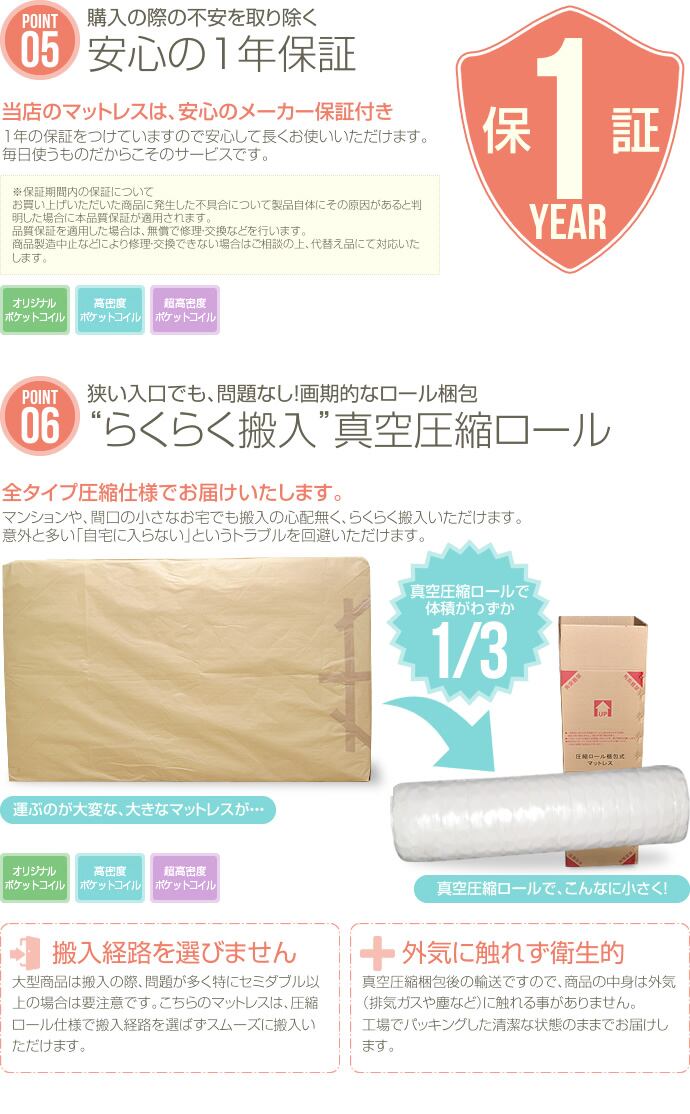 快眠ベッド マットレス。ポケットコイルマットレスは1つ1つのコイルが“点で体を支える”ので、しなやかな寝心地を体感できます。身体のラインにフィットし、マットレスにかかる“耐圧を分散”しますので“横揺れが少ない”のが特徴のベッド マットレスです。また、「8万回」の過酷な耐久テストをクリアした、安心の品質は、あらゆる世代の方へ快適な睡眠を実現いたしました。【セミダブルサイズ】