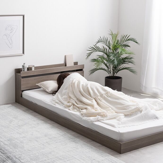 圧迫感がなくお部屋を広く魅せることが出来る『Coroa(コロア)』シリーズのフロアベッド。ベッドの高さを低くするロースタイル設計で、窮屈になりがちな寝室もゆとりある空間になります。ヘッドボードにはスマホや眼鏡などを置くのに便利な宮棚付きです。