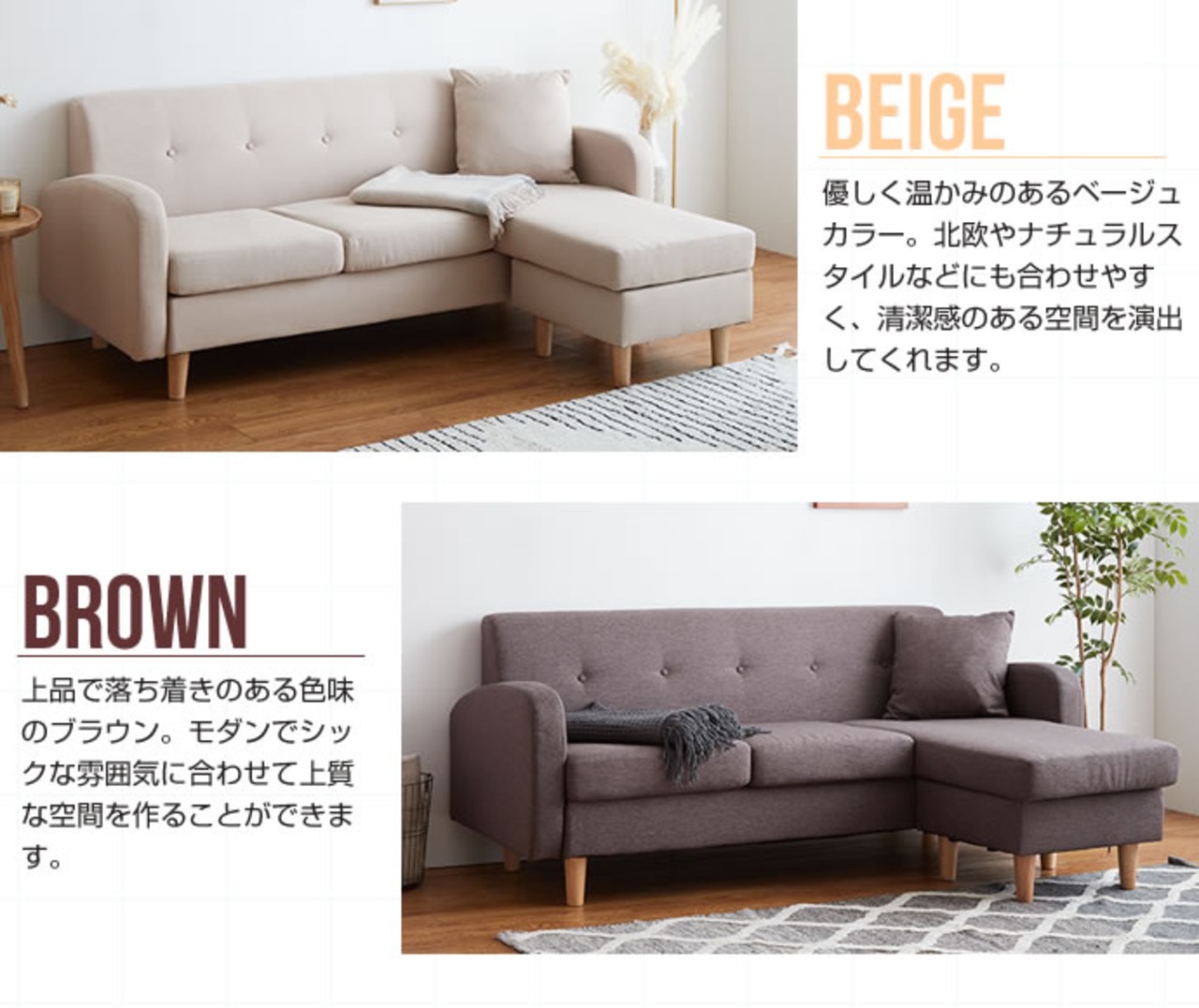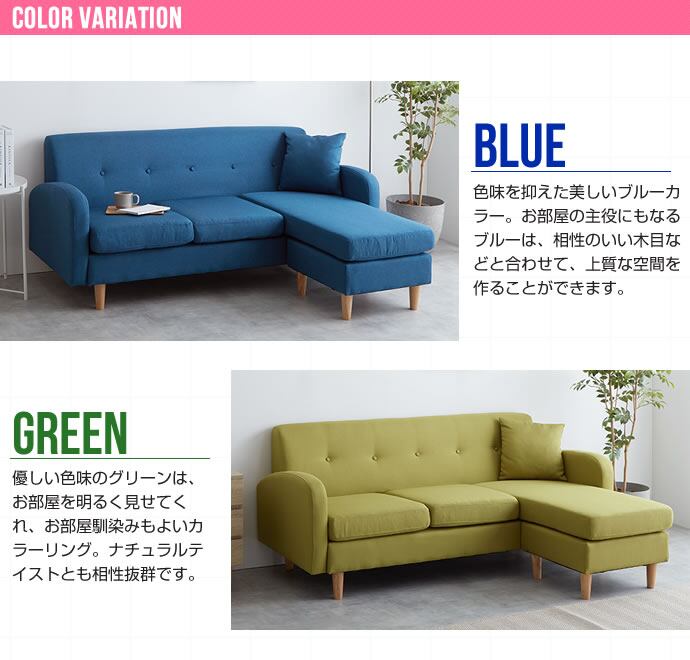 お部屋に合わせて形が変えられる『Spica(スピカ)』の3人掛けカウチソファ
