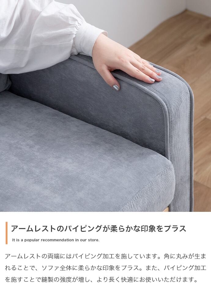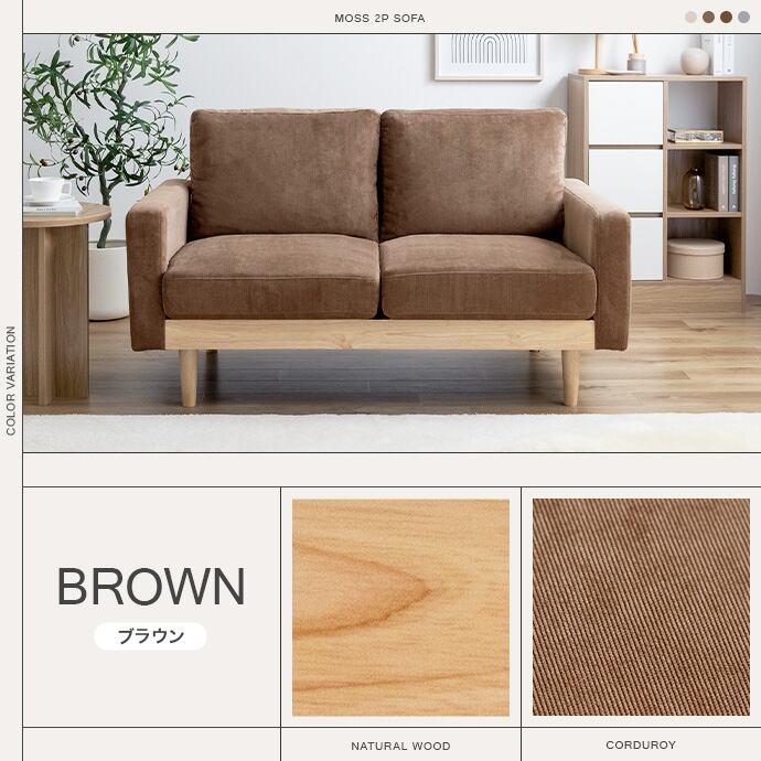 コーデュロイ×天然木の組み合わせが、お部屋に上質感を醸し出す『Moss(モス)』シリーズの2人掛けコーデュロイソファ。贅沢なゆとりのある座面は、くつろぎ時間をより快適なものへとさせます。また、ロータイプでお部屋を広く見せられるので、一人暮らしの方やワンルームにお住まいの方にもおすすめです。