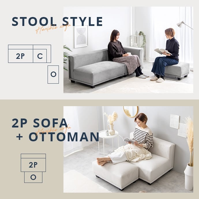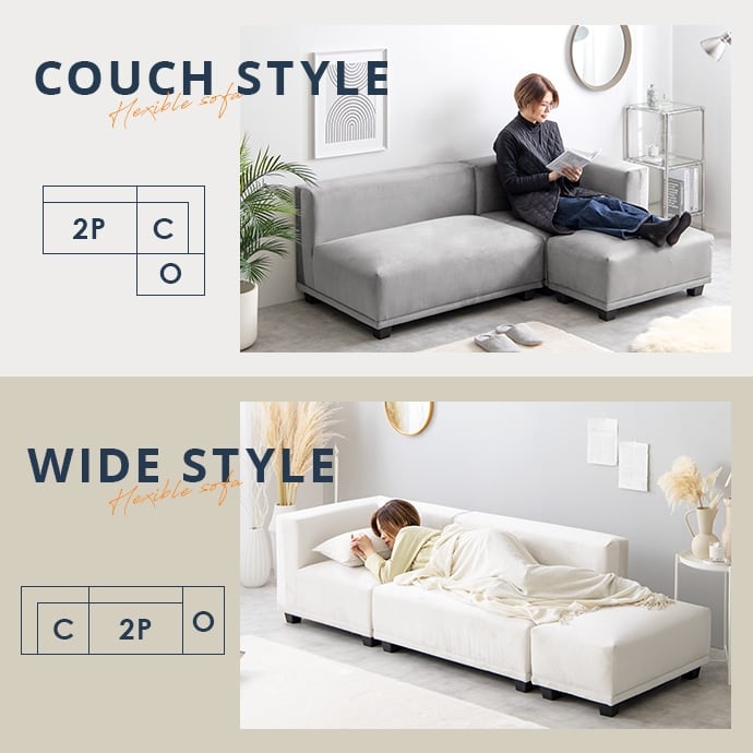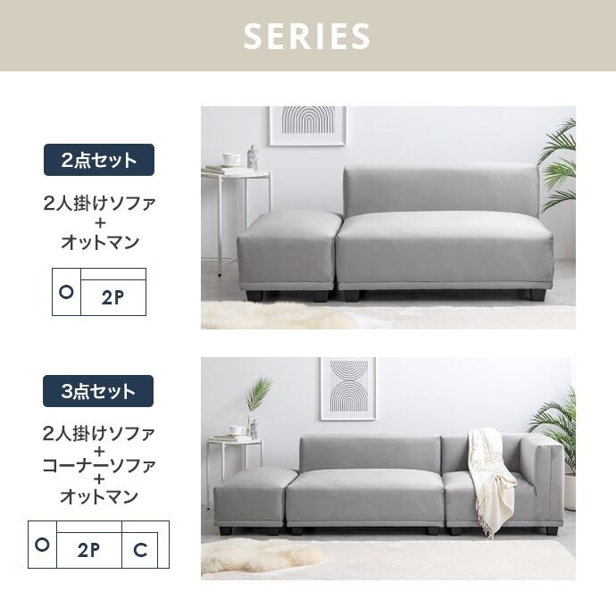 高級感のあるベロア素材を使用した『Celina(セリーナ)』シリーズ。お部屋の間取りやシーンに合わせ自由自在に組み換えが可能です。また、低め座面のロー設計で、お部屋を広く見せる効果があり、空間を贅沢にお使いいただけます。