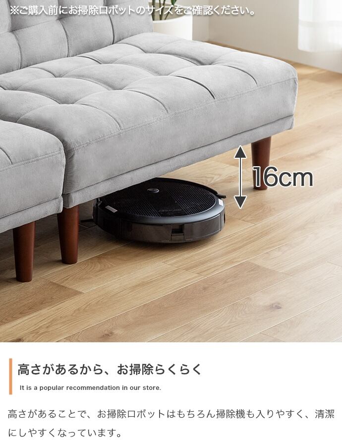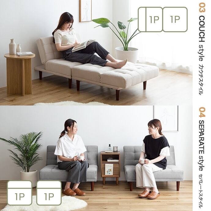 リクライニング可能でマルチに使える『Lillian(リリアン)』ベロアソファ。背もたれの角度を3段階で調節ができ、楽な姿勢がとれるので、快適なくつろぎタイムを叶えてくれます。背もたれを完全に倒しきるとソファベッドになり、友人や家族が泊まりに来た時用の簡易ベッドとしてや、足を伸ばしてゆったりくつろぐカウチとしても大活躍。また、脚部が取り外せるロー設計なので、お部屋に圧迫感を与えず、一人暮らしやワンルームにもぴったりです。
