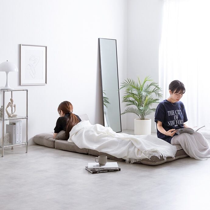 1台でソファ・カウチ・ベッドになる『Lara(ララ)』シリーズのリクライニングソファベッド。背もたれの角度を6段階で調節でき、楽な姿勢が取れるので快適なくつろぎタイムを叶えてくれます。また、ロー設計なのでお部屋に圧迫感を与えず、一人暮らしやワンルームにもピッタリです。