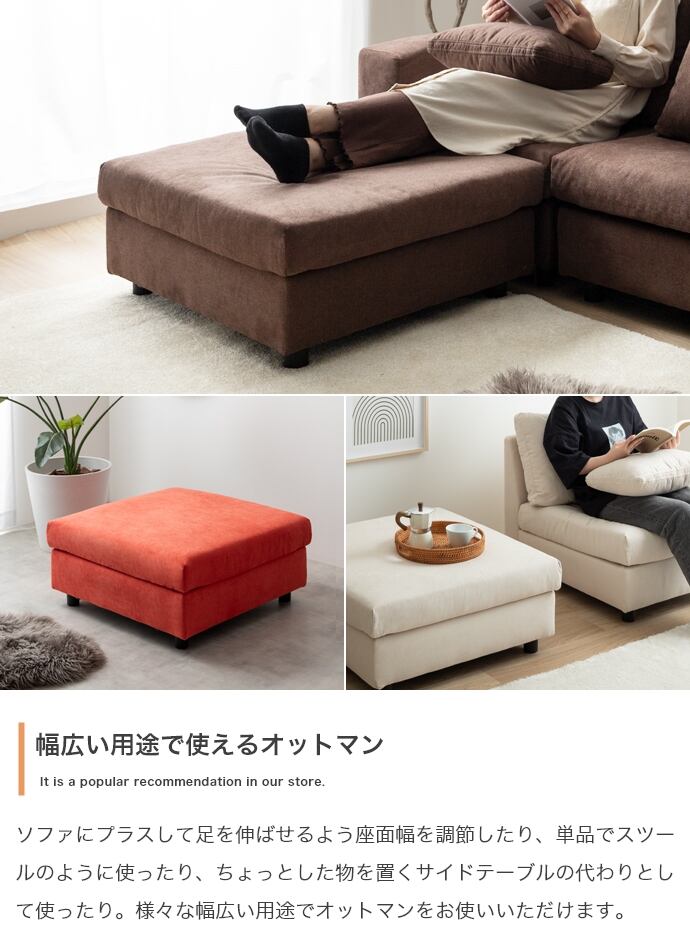 理想の空間を自由に楽しめる『Legeno(レゲノ)』シリーズ。お部屋の間取りやシーンに合わせて自由自在な組み替えが可能。滑らかなファブリック生地とふかふかの座面、厚みのある背もたれや便利なワイドアームレストが快適なリラックスタイムを実現します。ロータイプでお部屋を広く見せられるので、一人暮らしの方やワンルームにお住まいの方にもおすすめです。