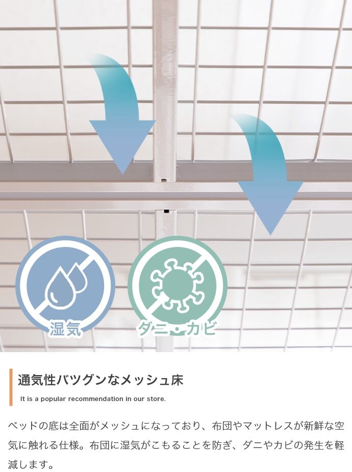 【耐荷重】ベッド:約120kg、デスク:約50kg