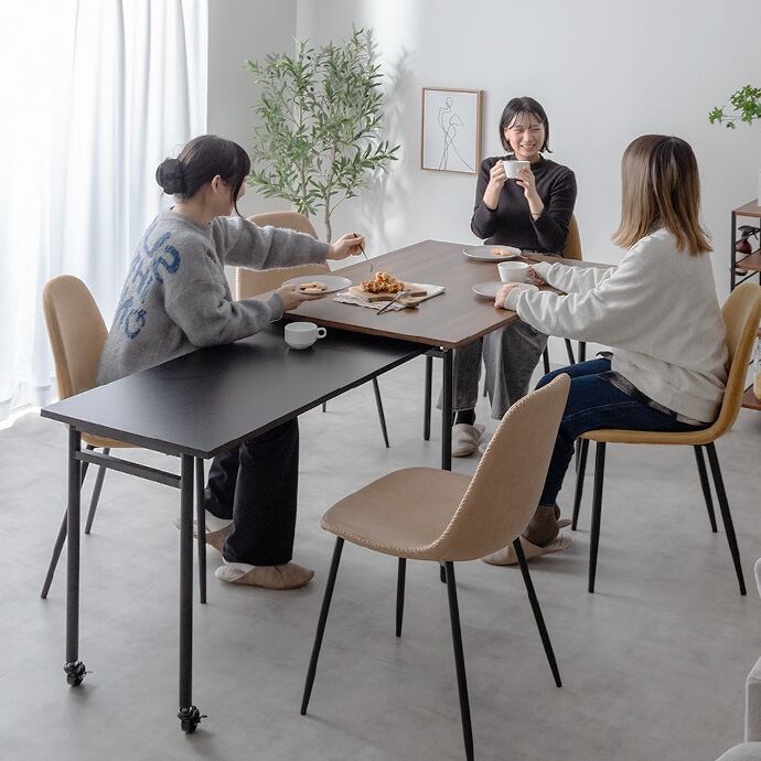 使う時だけ天板を広げられる『Libre(リーブル)』シリーズの伸縮スライド式ダイニングテーブル長方形。キャスター付き天板をスライドして引き出し、無段階での調整が可能。お部屋を広く使いたい時はコンパクトに、来客時などはワイドに使え、様々なシーンに合わせて活躍してくれます。天板には水や傷に強いメラミン加工を、脚には粉体塗装を施しているのでお手入れも簡単です。