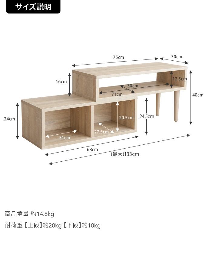 【耐荷重】上段:約20kg、下段:約10kg
