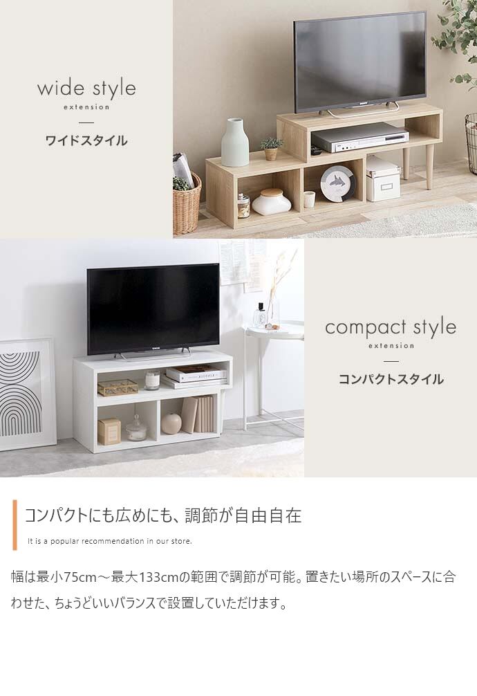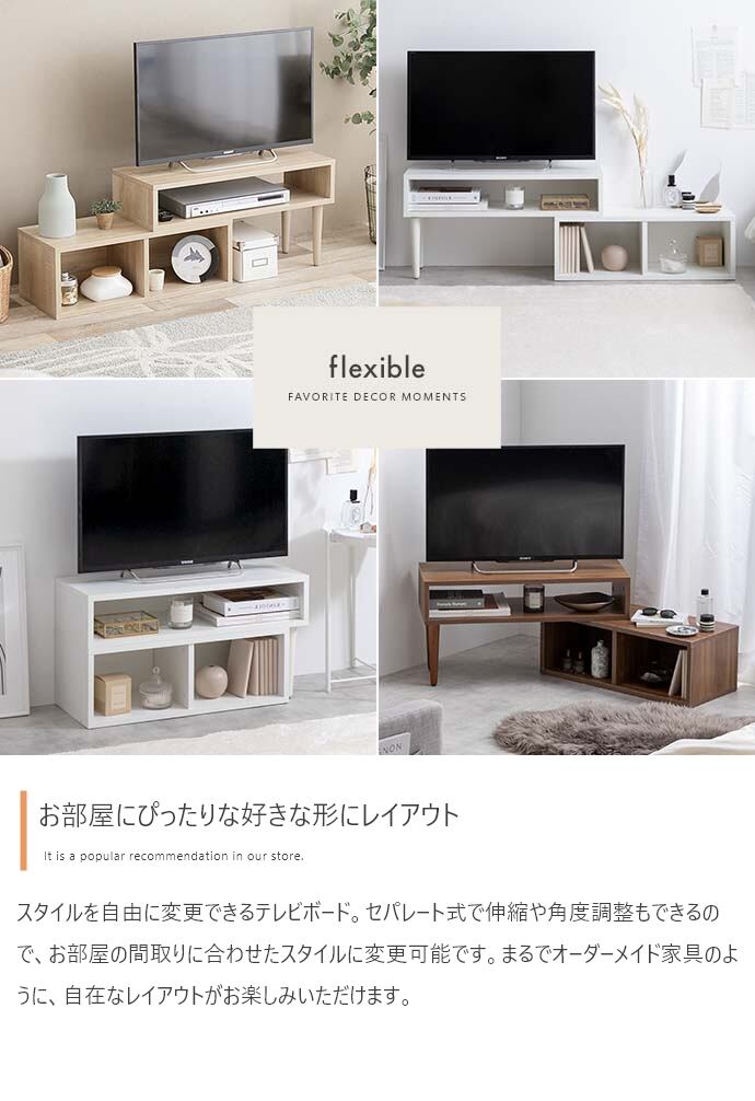 温もりのある木の優しさが魅力の“Cielo(シエロ)”伸縮型テレビボード。お部屋のスペースやインテリアに合わせてお好みのレイアウトにすることができます。