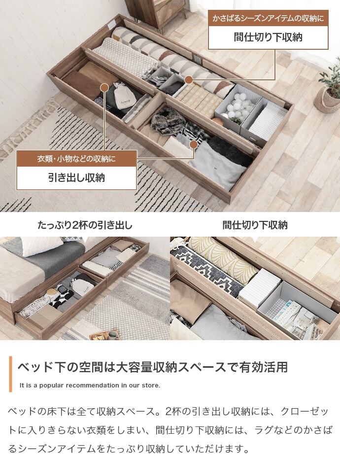 【セミシングル】限られたスペースの方におすすめの『Glad』ヘッドレス収納付きベッド。