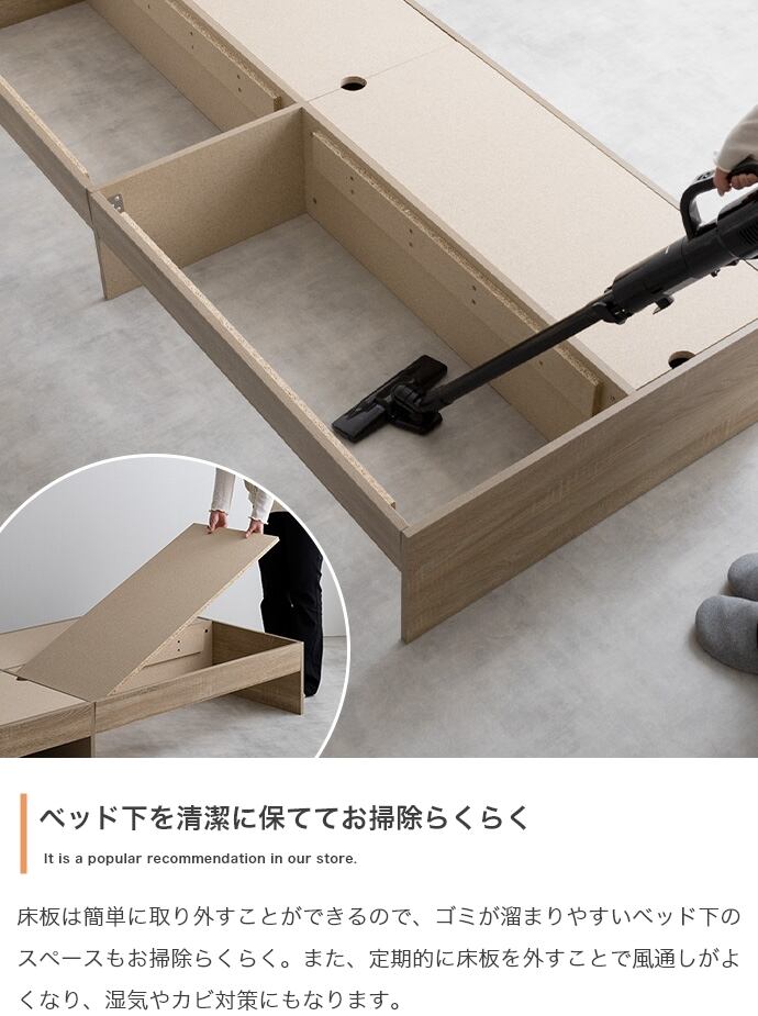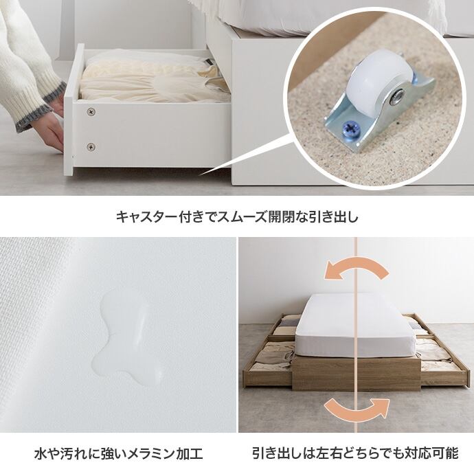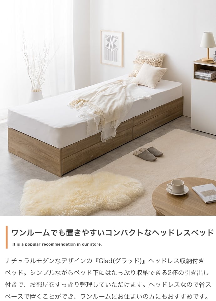 【シングル】ナチュラルモダンデザインの『Glad』ヘッドレス収納付きベッド