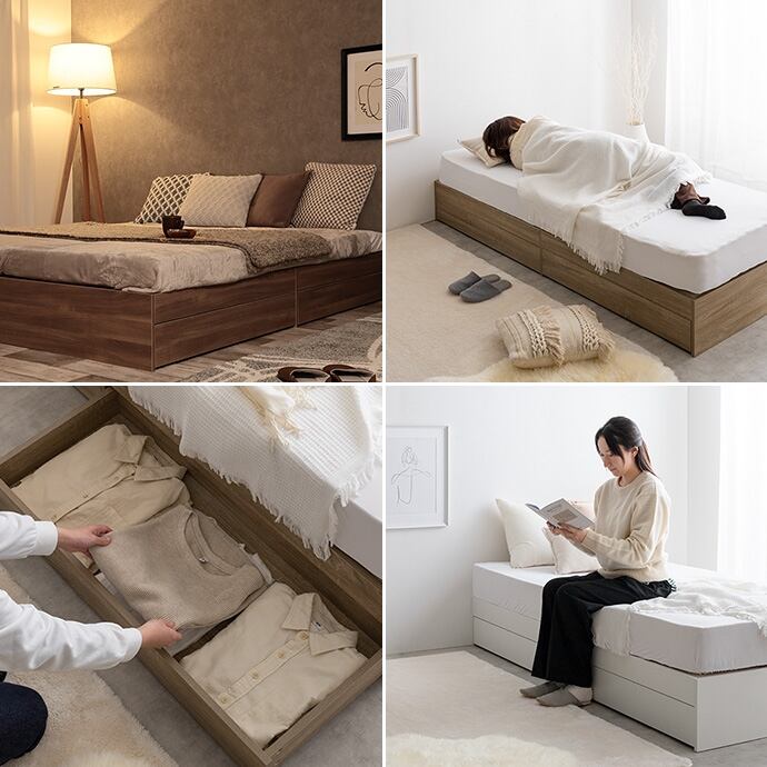 【シングル】ナチュラルモダンデザインの『Glad』ヘッドレス収納付きベッド
