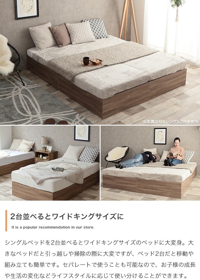 【シングル】ナチュラルモダンデザインの『Glad』ヘッドレス収納付きベッド