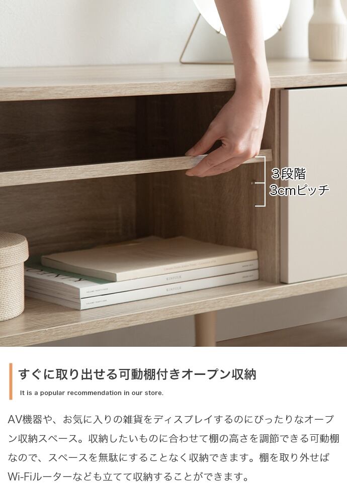 バイカラーの配色が魅力的な『Erin』バイカラーテレビボード。ナチュラルモダンな印象で、お部屋のアクセントアイテムとして活躍します。