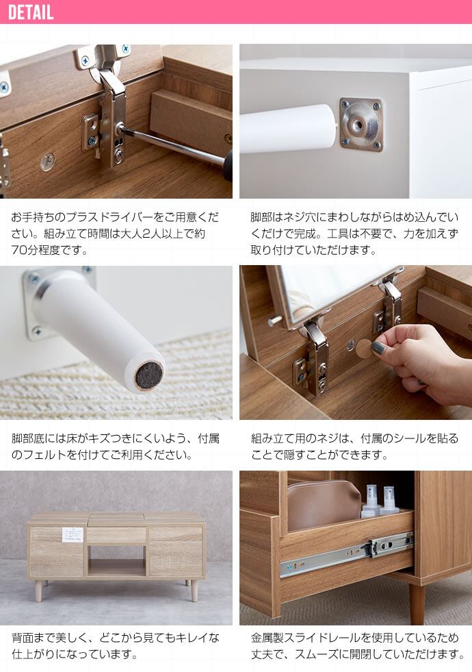 スペースに余裕がない方に嬉しい、1台で2役を担う『Charme(シャルム)』シリーズのドレッサーテーブル