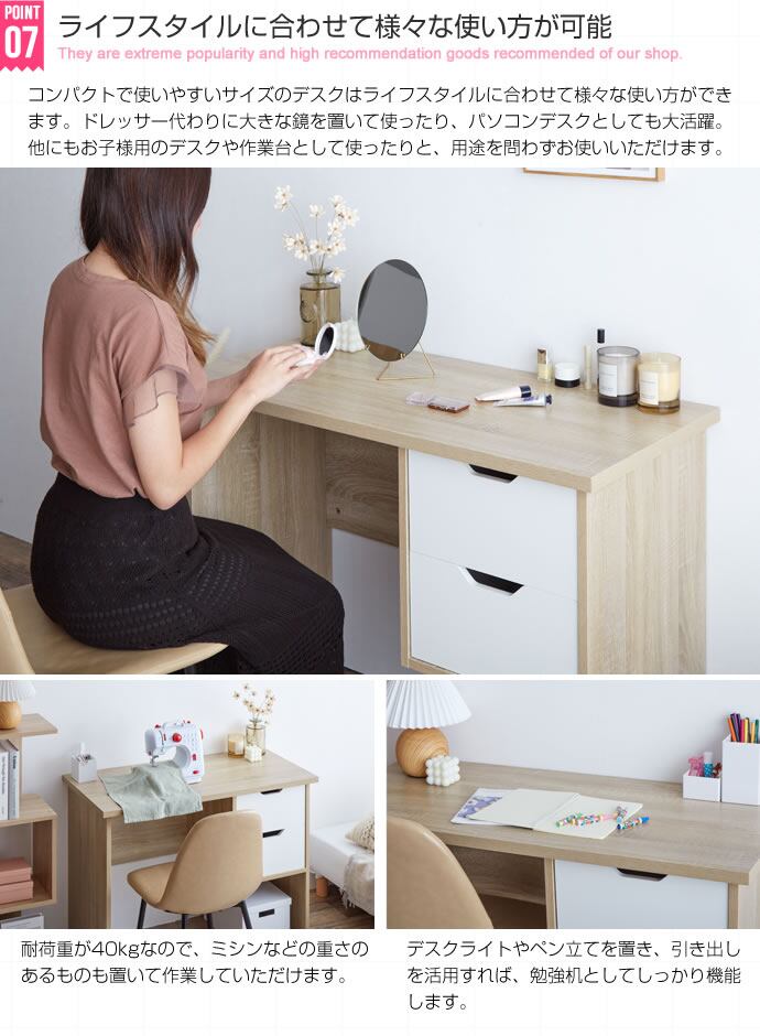 【耐荷重】天板:40kg、引き出し:6kg(1杯あたり)