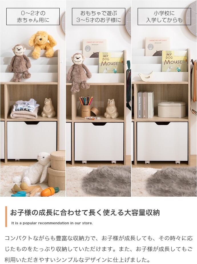 お子様のおもちゃや絵本をまとめてスッキリ収納可能な『Pila(ピラ)』シリーズの絵本棚