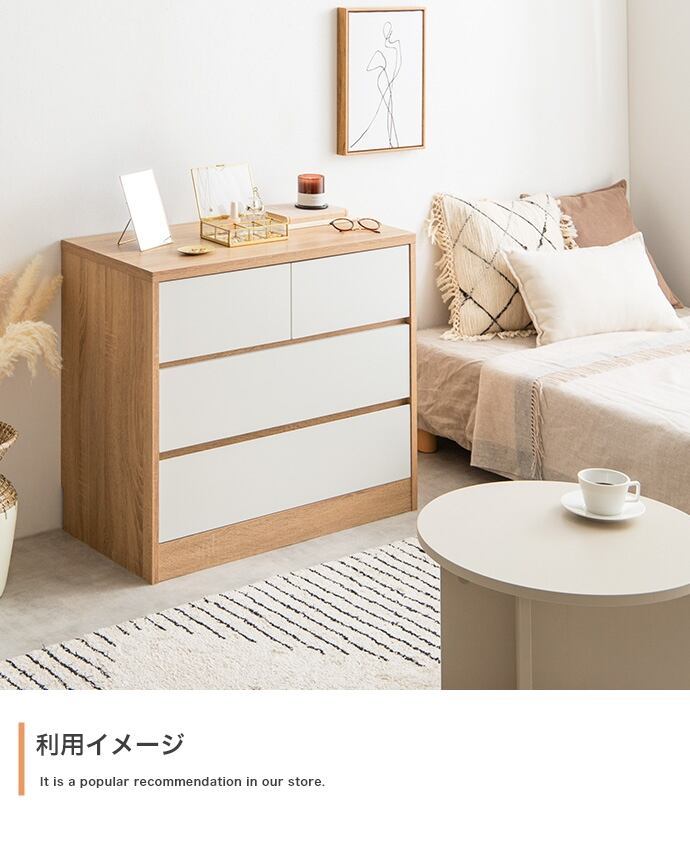 落ち着いた印象を与えながらお部屋にスッと馴染む『Linoa(リノア)』シリーズのロータイプチェスト。ノイズレスでシンプルなデザインは、お部屋にすっきりとした印象を与え、スタイリッシュで洗練された空間を演出します。サイズは省スペースで置けるコンパクト設計なので、一人暮らしの方やワンルームにお住まいの方も置いていただきやすいです。また、コンパクトなのに収納力も抜群。引き出しの深さもしっかりあるので、厚手の物や高さのある物もしっかり収納できます。オールシーズンの衣類をまとめて収納しておきたい方にもオススメです。