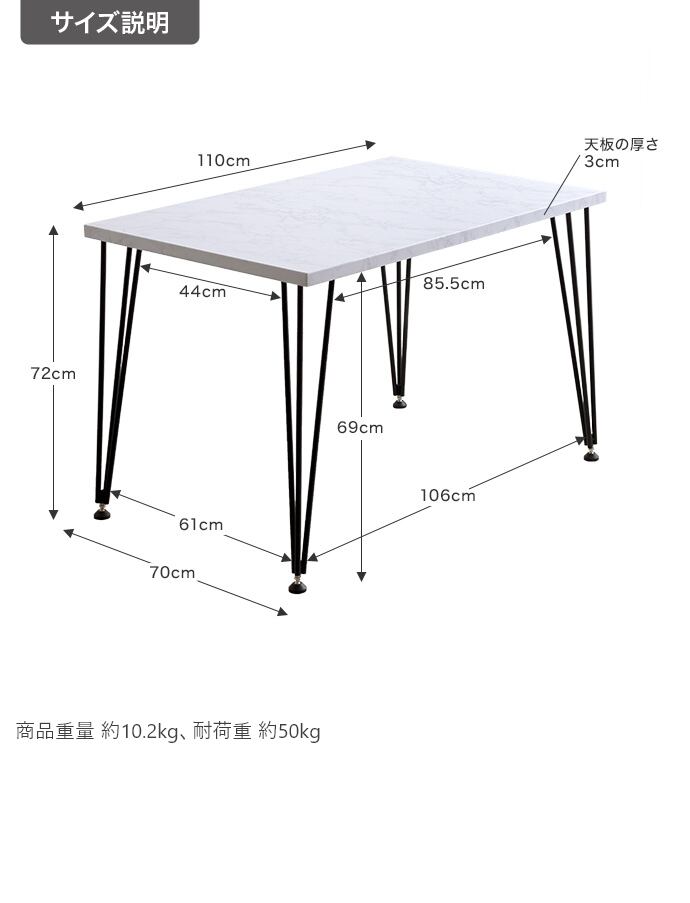 美しい大理石調の天板×ブラックスチール脚のデザインが特徴的な『Melia(メリア)』ダイニングテーブル。お部屋に置くだけで、モダンで洗練された空間を演出します。また、コンパクトなサイズで、省スペースに置くことが可能なので、スペースに余裕のないお部屋にもおすすめです。さらに、天板にはPVC加工を、アクセントとなる3本脚には粉体塗装を施しているのでお手入れ簡単。普段から気兼ねなくお使いいただけます。