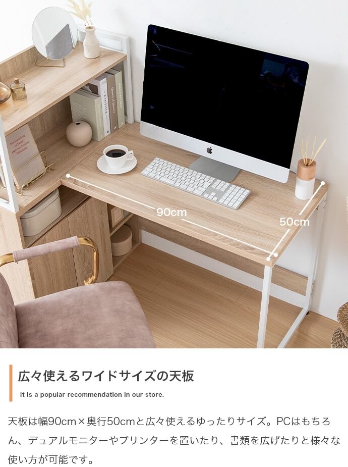 大容量収納でデスク周りがすっきり片付く、収納とデスク一体型の『Fine(フィーヌ)』L字収納・棚付きデスク