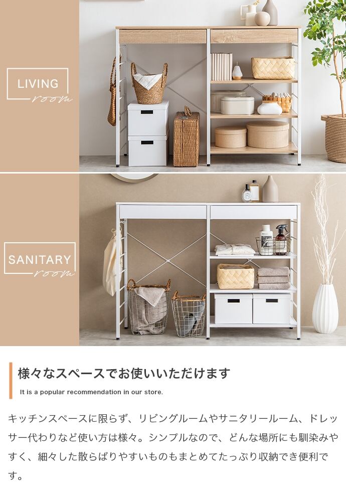 【耐荷重】天板:約30kg、各引き出し:約5kg、各棚:約10kg