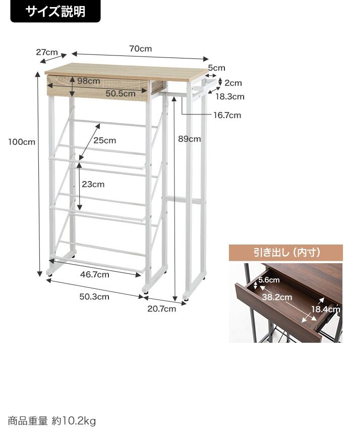 【耐荷重】天板:約15kg、引き出し:約5kg、ラック(1段当たり):約3kg 傘立て:約3kg