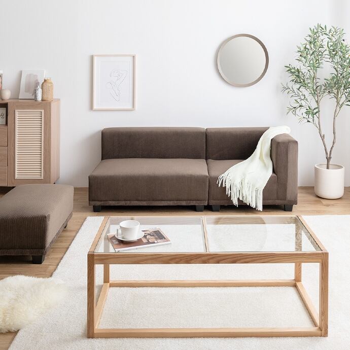 上質なコーデュロイが理想の北欧テイストを作り出す『Sucre(シュクル)』シリーズのコーナーソファ。全面にコーデュロイを使用したシンプルデザインのソファは、温かみのある北欧スタイルはもちろん、トレンド感のある海外インテリア風など、幅広いテイストのお部屋に馴染みます。また、シリーズで揃えるとお部屋の間取りやシーンに合わせ自由自在にレイアウトが可能です。高級感のある低め座面のロー設計で、お部屋を広く見せる効果があり、空間を贅沢にお使いいただけます。