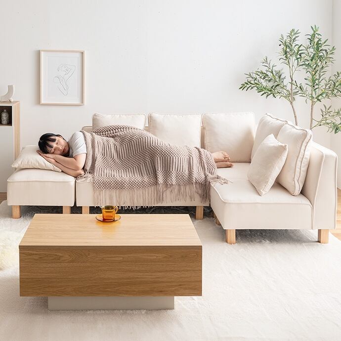 シンプルで洗練された印象の『Cindy(シンディ)』シリーズの1人掛けソファ。省スペースで置きやすく、空間にスッと馴染みます。またシリーズで使えば、お部屋の間取りやライフスタイルの変化に合わせて、自由自在なレイアウトを楽しむことも可能です。座り心地のいい座面や空間を広く見せるロー設計、脚を取り外せばフロアソファとしても使える2WAY仕様など、こだわりをたっぷり詰め込みました。