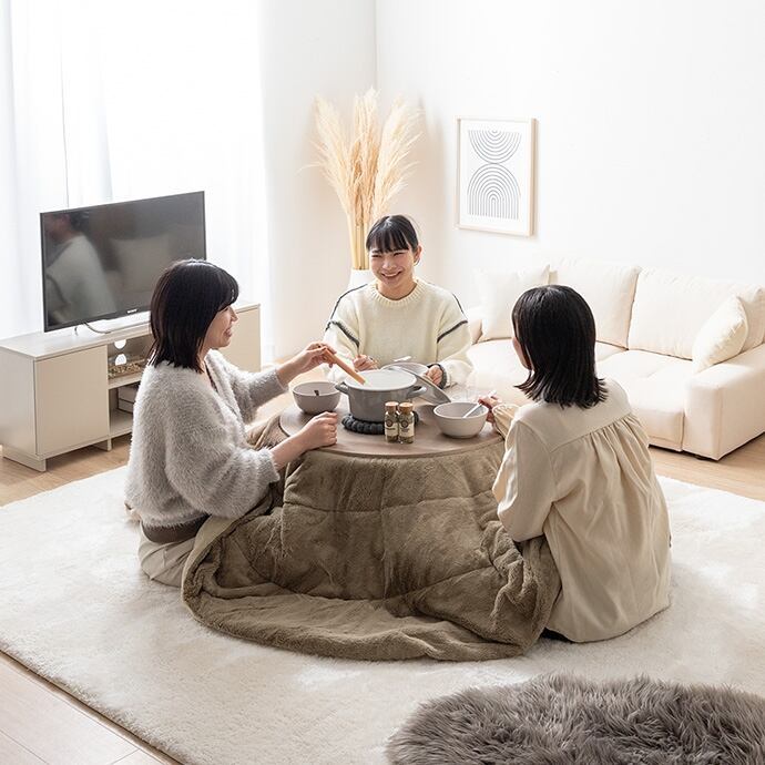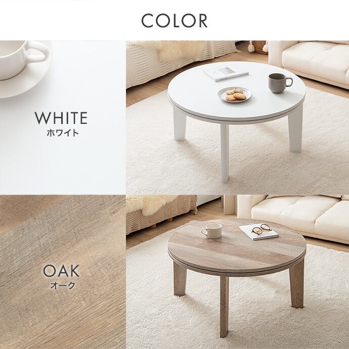 コンパクトサイズでお部屋に省スペースで置けるこたつテーブル。ナチュラルな2色のオリジナルカラーが、お部屋を洗練された印象にさせつつすっと馴染みます。こたつとしてもローテーブルとしてもお使いいただけるので、1年中使用可能です。また、薄型ヒーター採用で足を入れても窮屈に感じることなく、温かくゆったり快適にお過ごしいただけます。