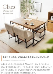食卓とくつろぎ、どちらも叶える『Claes(クラース)』ダイニング5点セット。座り心地の良いソファと広々としたテーブルで、食事もリラックスタイムも快適に楽しめます。コーデュロイ×木目×アイアンの絶妙な異素材ミックスが、こなれ感のあるおしゃれな空間を演出。コンパクトなサイズで省スペースに設置でき、ワンルームなど限られた空間にもピッタリです。