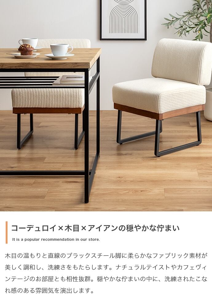 食卓とくつろぎ、どちらも叶える『Claes(クラース)』ダイニングテーブル。温もりを感じる木目調の天板とスタイリッシュなアイアン脚が、まるでカフェのような落ち着いた空間を演出します。コンパクトなサイズで省スペースに設置でき、ワンルームなど限られた空間にもピッタリ。また、テーブル下の収納棚が、散らかりがちな小物をすっきり片付けてくれます。