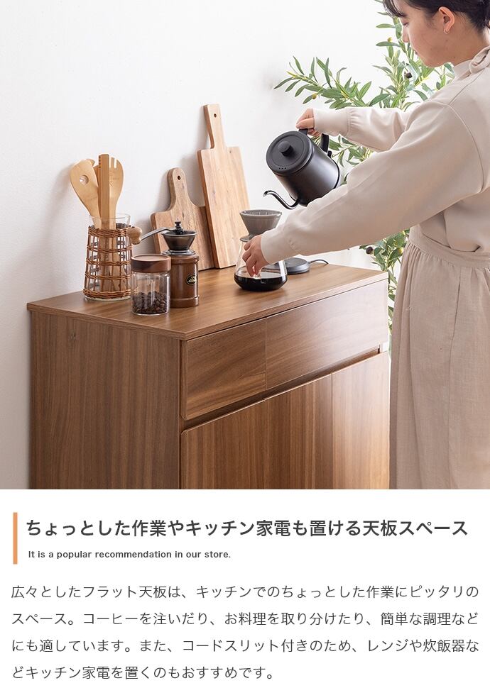 ゴミ箱に見えないデザインでお部屋に馴染む『Basurero(バスレーロ)』ゴミ箱付きキッチンカウンター。生活感を隠しながらもゴミ箱1杯あたり45Lゴミ袋が入る大容量で、使いやすく分別ラクラク。さらに面倒なゴミ出しをより快適にするため、2連タイプと3連タイプの2種類をご用意しました。また、コードスリット付きの天板はちょっとした作業をしたりキッチン家電を置くのにもピッタリ。コンパクトなこだわりのサイズ感はゴミ箱上ラックにも入り、理想のキッチン空間を作り出します。